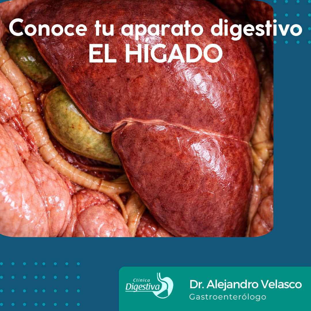 El hígado es la glándula más grande del cuerpo. Se encuentra ubicado en el cuadrante superior derecho del abdomen, por debajo del diafragma y protegido por las costillas. Tiene un peso de 1.4 – 1.6 kilogramos.